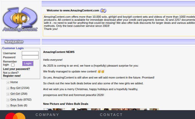 When buying content, choose a trusted site. Amazingcontent.com has been selling adult content since 2004. Their website looks outdated, but they have a lot of content. They have videos and pictures at low prices.